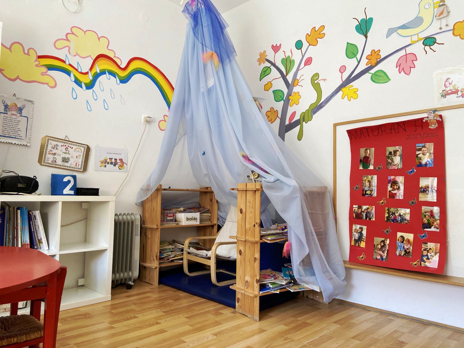 preuzmite .pdfOdgojno-obrazovni djelatnici vrtića svoj rad temelje na humanističkoj koncepciji, velika pažnja poklanja se psihofizičkom zdravlju djece. Potičemo osjećaj sigurnosti i pripadnosti, zaštite i prihvaćanja oblikovanjem stimulirajuće, poticajne i podržavajuće okoline. Prostor odgojnih skupina redovito mijenjamo i nadopunjujemo slikovnicama i didaktičkim materijalom u čijoj izradi često sudjeluju i djeca. Sobe dnevnog boravka organizirane su kao skup više tematski bliskih centara: soba za obiteljske igre, soba za istraživačke i konstruktivne igre, umjetnička soba, soba početnog čitanja i pisanja i stolno-manipulativnih igara.